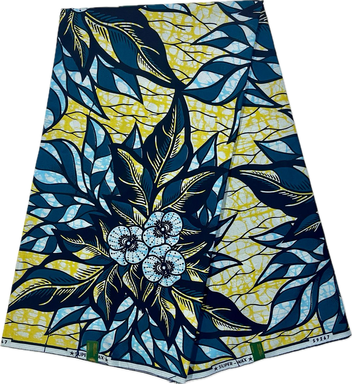 Centre de table floral : Les grandes fleurs épanouies au centre symbolisent la croissance, la beauté et l'éclosion. Dans les textiles africains, les fleurs sont souvent synonymes de joie, de célébration et de prospérité.